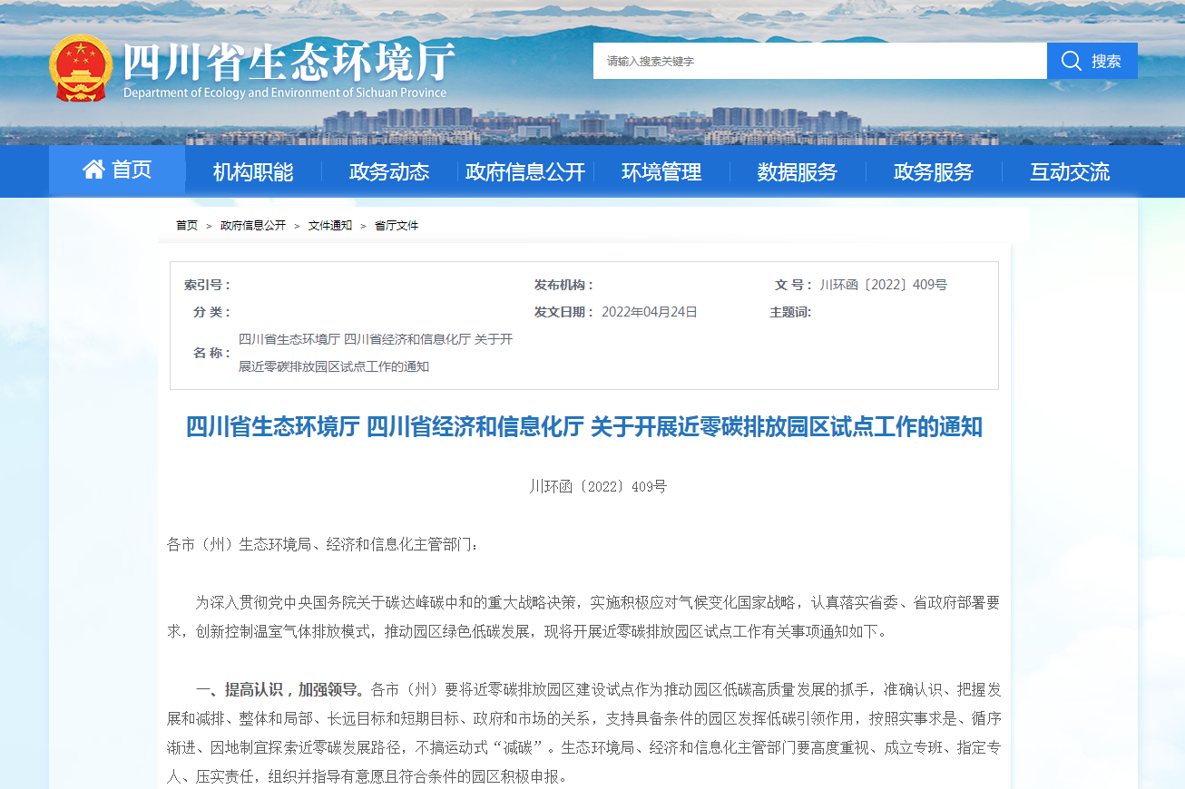 地方政策四川:2025年前建成約20個近零碳排放園區(qū)