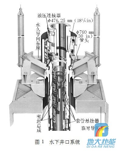 臨時導向基座用于定井位,是首先下入的設備,坐在海底泥線上;永久導向基座安裝在臨時導向基座之上,通過連接在導向柱上的導向繩引導后續(xù)工具的入井及設備的安裝;?762mm(30in)導管頭懸掛導管坐落在永久導向基座內,用專用下入工具隨永久導向基座同時下入;?476.25mm(183 /4in)高壓井口頭下部連接表層套管,坐落在導管頭內,通過液壓連接器連接水下防噴器;各層技術套管通過套管掛和密封總成懸掛在高壓井口頭內。