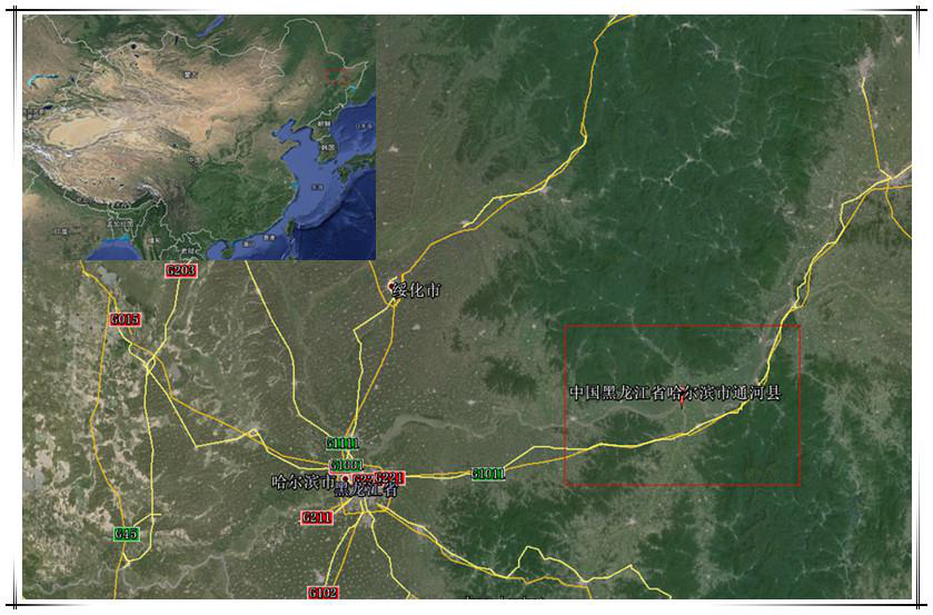 通河縣位于黑龍江省中部,小興安嶺南麓,松花江中游北岸,地理坐標(biāo)東經(jīng)128°7′30″—129°24′30″,北緯45°52′30″—46°37′30″之間。東與依蘭縣為鄰,西與木蘭縣毗鄰,南與松花江為界與方正、賓縣隔江相望,北以平頂山分水嶺為界與鐵力市、慶安縣接壤。通河全境東西長約89.7公里,南北寬約87公里,幅員面積5678公里。通河縣北部山區(qū),屬小興安嶺山脈。最高峰海拔1100米,一般海拔平均400-800米。最大坡度70°,溝壑峽谷多呈V型。成土母質(zhì)屬于基巖、沖積堆積物。其地殼厚度可達(dá)70公里,為上、下兩層,上層為花崗巖,由于富含硅和鋁,又稱硅鋁層。下層為玄武巖,富于含硅和鎂,也叫硅鎂層。地殼表層因受大氣、水、生物作用,形成土壤層、風(fēng)化殼和沉積層,厚度介于0-10公里之間,占總面積的70%,中部丘陵和淺山區(qū),山勢平緩,峽谷開闊。一般平均海拔在200-500米之間,山頂坡度40°以上,坡降15°-20°左右。物理風(fēng)化作用較強(qiáng),成土母質(zhì)屬于殘積物和坡積物。丘陵屬于中山區(qū)。南部與山前臺(tái)地緊緊相連,分布在山區(qū)外圍,呈海拔200米左右丘陵,下屬寬闊小平原,土質(zhì)肥沃,都已開墾成耕地,丘陵上適宜造林和發(fā)展果樹生產(chǎn)。丘陵下部往南延伸趨近于松花江北岸屬于山前臺(tái)地高平原區(qū)。