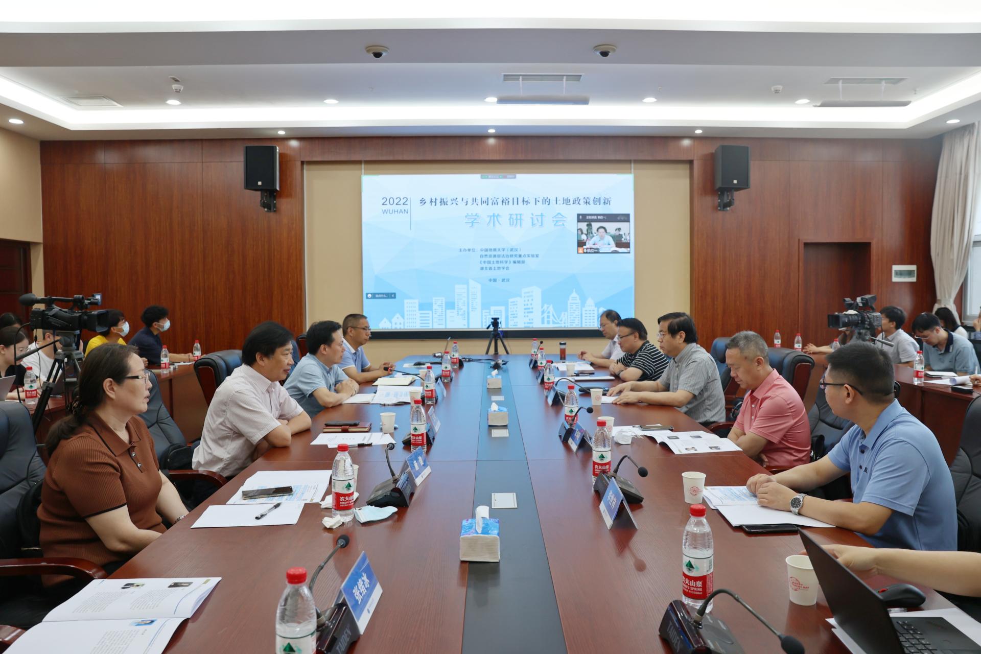 中國地質(zhì)大學(武漢)地大熱能新聞網(wǎng)訊:為紀念第32個全國土地日,迎接我校70周年校慶,6月18日,我校公共管理學院、自然資源部法治研究重點實驗室聯(lián)合《中國土地科學》編輯部、湖北省土地學會,共同舉辦以“鄉(xiāng)村振興與共同富裕目標下的土地政策創(chuàng)新”為主題的學術研討會。來自自然資源部國土空間規(guī)劃研究中心、中國國土勘測規(guī)劃院、南京大學、華中農(nóng)業(yè)大學、浙江大學、中國農(nóng)業(yè)大學、南京農(nóng)業(yè)大學等單位的10余位土地領域