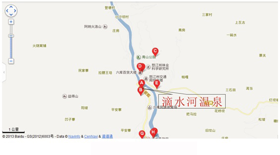 云南滴水河溫泉風(fēng)景滴水河溫泉以泉群形式出露,出水點(diǎn)散布于滴水河河床及河漫灘上,地表為第四系礫石、砂等沖洪積物覆蓋,滴水河溫泉出露特征高程與躍進(jìn)橋溫泉和瑪布河溫泉不同,其出露高程為1502.3m,相對(duì)較高。